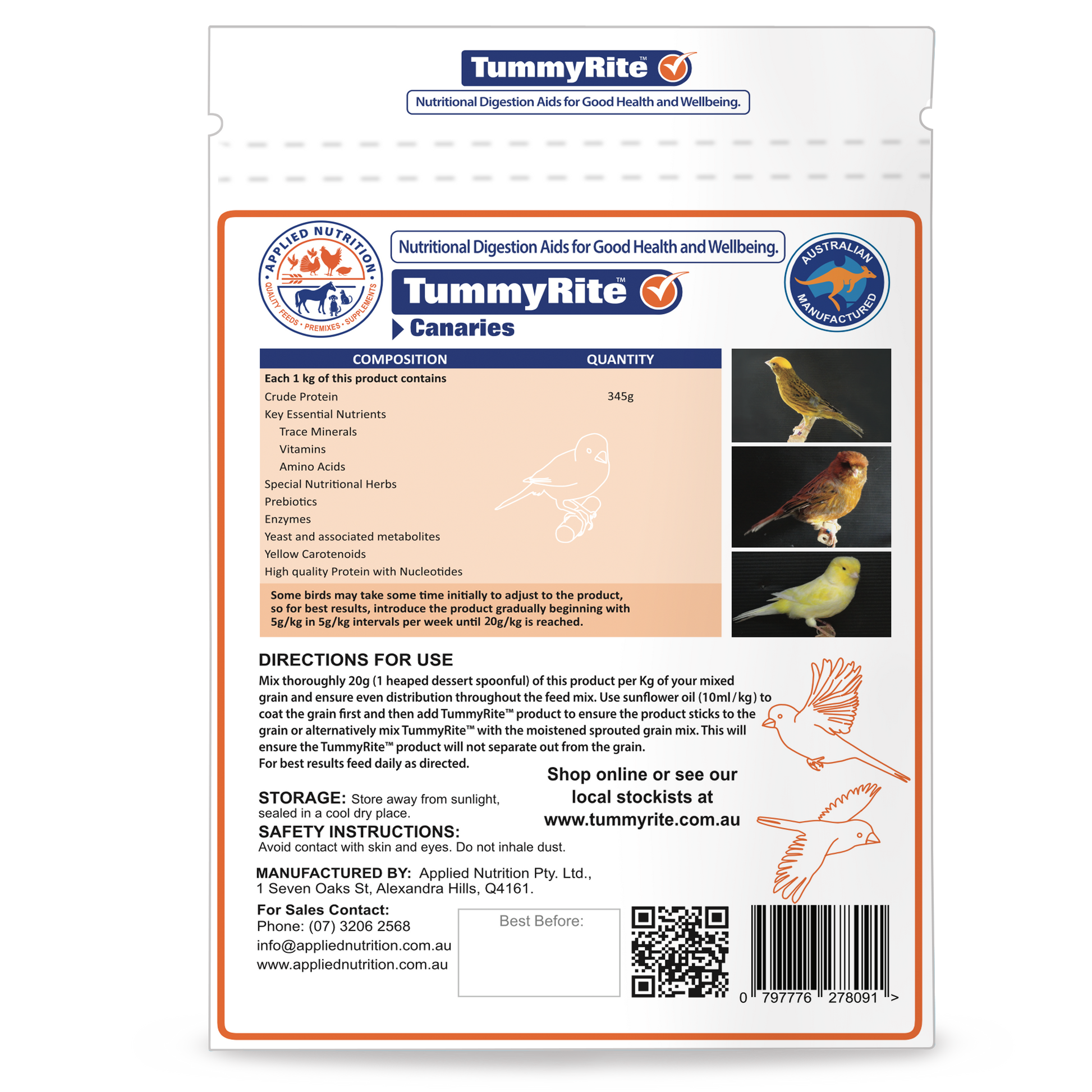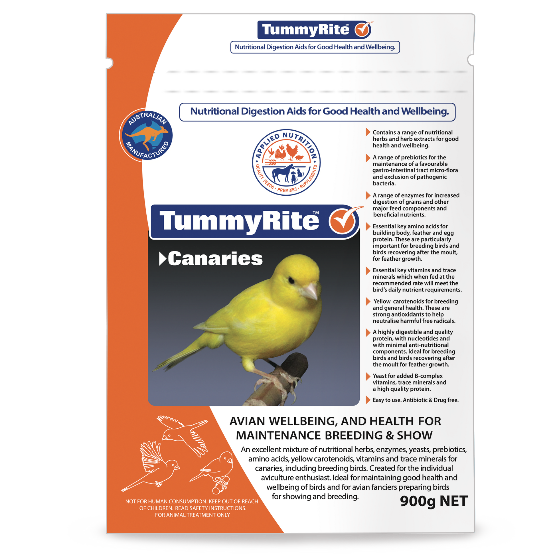 TUMMYRITE™ FOR CANARIES has a very low inclusion rate of 20g/kg of seed or soft food, (see brochure for details).