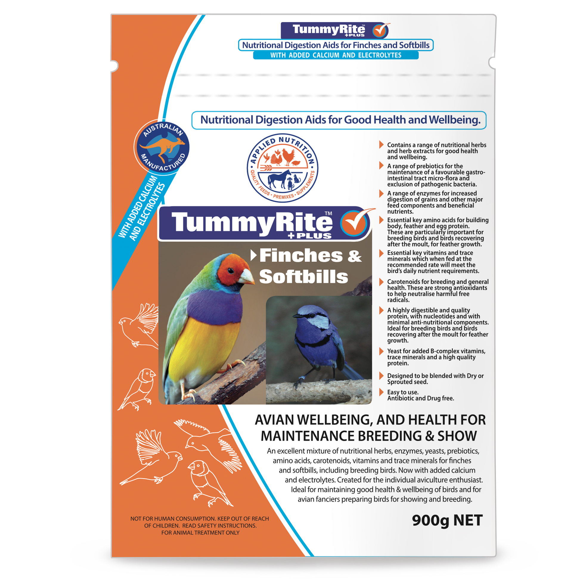 TUMMYRITE™ PLUS FOR FINCHES AND SOFTBILLS is a nutritional supplement for all classes of Finches and Softbills designed with five main objectives: